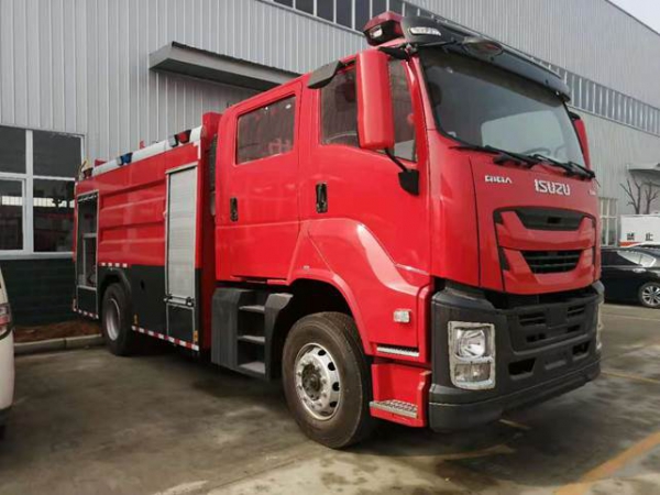 7噸消防車采用慶鈴汽車股份有限公司QL1180EQFRY 型二類汽車底盤,改制雙排駕駛室,乘員2+3人,該車駕乘舒適輕便。上裝采用內藏式水罐,整車載液量水為4650kg,泡沫為1950kg。器材箱采用高質量鋁合金卷簾門。底盤取力,發(fā)動機型號為6HK1-TCG61,最大功率177kW,通過萬向聯(lián)軸器驅動安裝在汽車尾部泵房里的上海雄真CB10/60型常壓消防泵,可在1.0MPa下穩(wěn)定輸出60L/s的流量;車頂安裝成都威斯特消防器材有限責任公司生產(chǎn)的PL8/48型消防炮(泡沫消防車),流量48L/s,對應壓力0.8MPa,最大承壓1.3MPa,射程 水≥70m 泡沫≥60m,可360°旋轉。同時該車具有比功率大、綜合性能強、操控集中簡便等特點。